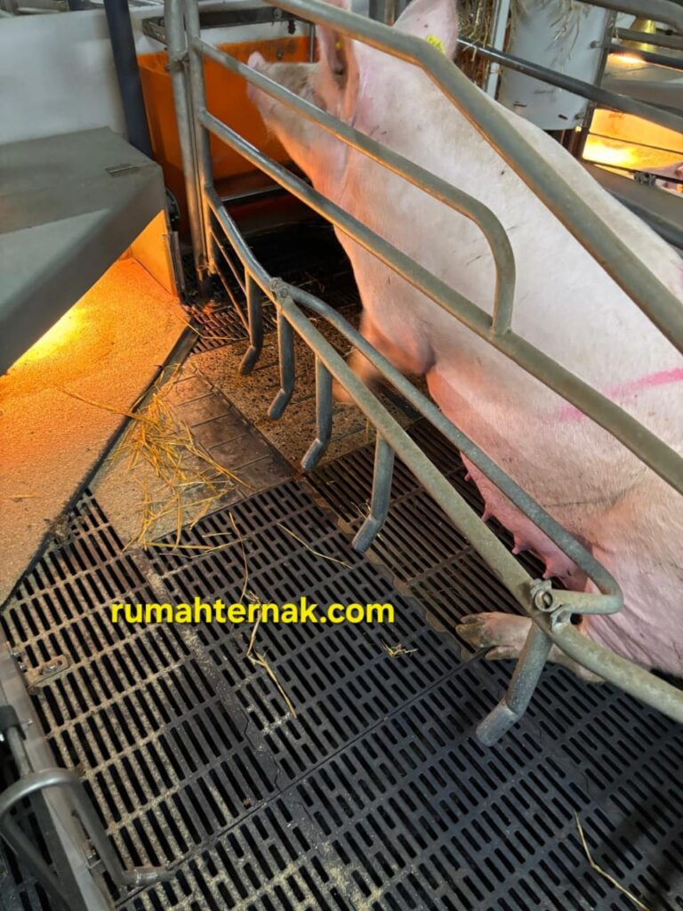 c. Ruang Gerak: Berikan ruang gerak yang cukup agar induk babi bisa bergerak, berdiri, dan berbaring dengan nyaman.