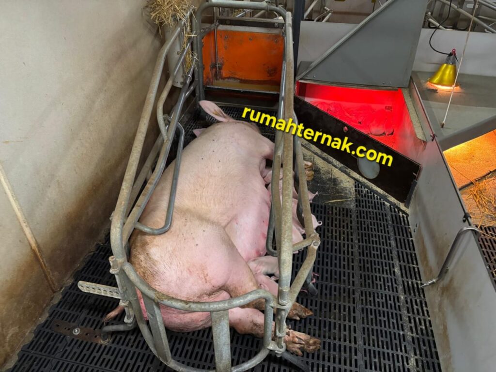 b. Suhu Kandang: Sediakan lingkungan yang nyaman dengan suhu yang ideal. Tantangannya adalah induk babi lebih suka suhu yang sejuk, sedangkan anak babi membutuhkan suhu yang hangat. Pastikan ada area yang terpisah (crepe area) yang dilengkapi dengan lampu pemanas untuk anak babi.
